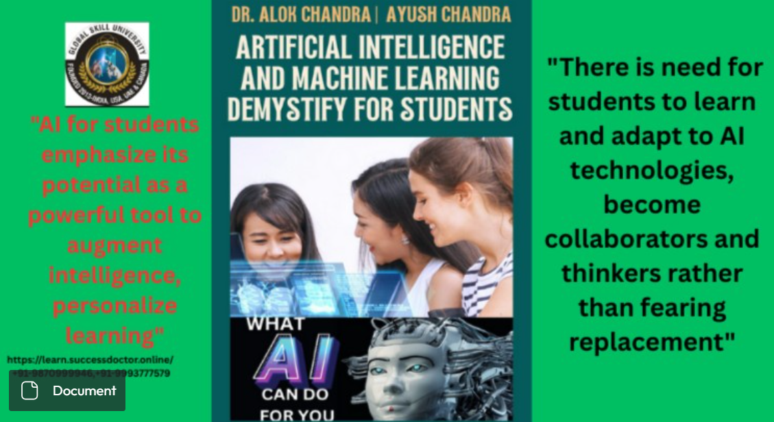 A comprehensive guide designed to demystify the complex topics of AI and ML for students. It covers fundamental concepts, practical applications, and real-world examples to enhance the understanding of these cutting-edge technologies. Whether you are a beginner or have some knowledge in the field, this resource will help you deepen your understanding and expand your knowledge in AI and ML. Dive into the world of algorithms, neural networks, deep learning, Sharpen your skills, broaden your horizons, and unleash your potential by supplementing your existing knowledge .
